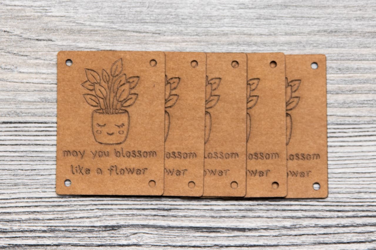 5 laser-engraved labels with a floral motivational statement